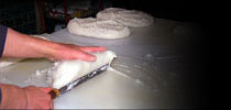 宇和海で漁れる新鮮な小魚を「うす」ですりつぶし、味を調え、 手づけ一本蒲鉾や、ちくわ、はらんぼ天ぷらなどに仕上げていきます。 朝漁れの新しい素材と、古くから受け継がれてきた伝統の調和が おいしい蒲鉾を作り上げていきます。